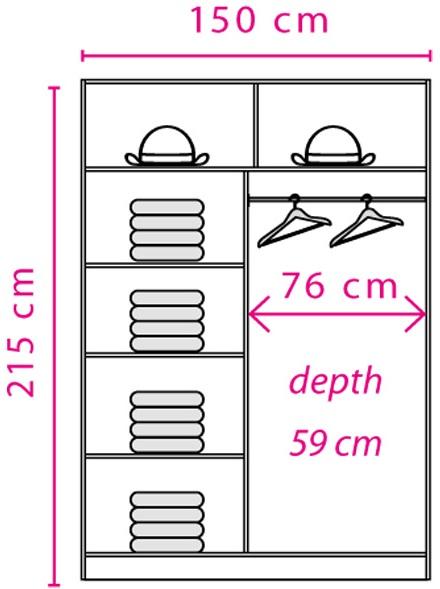 | Wymiary w cm | szerokość: 150 | wysokość: 215 | głębokość: 59 |