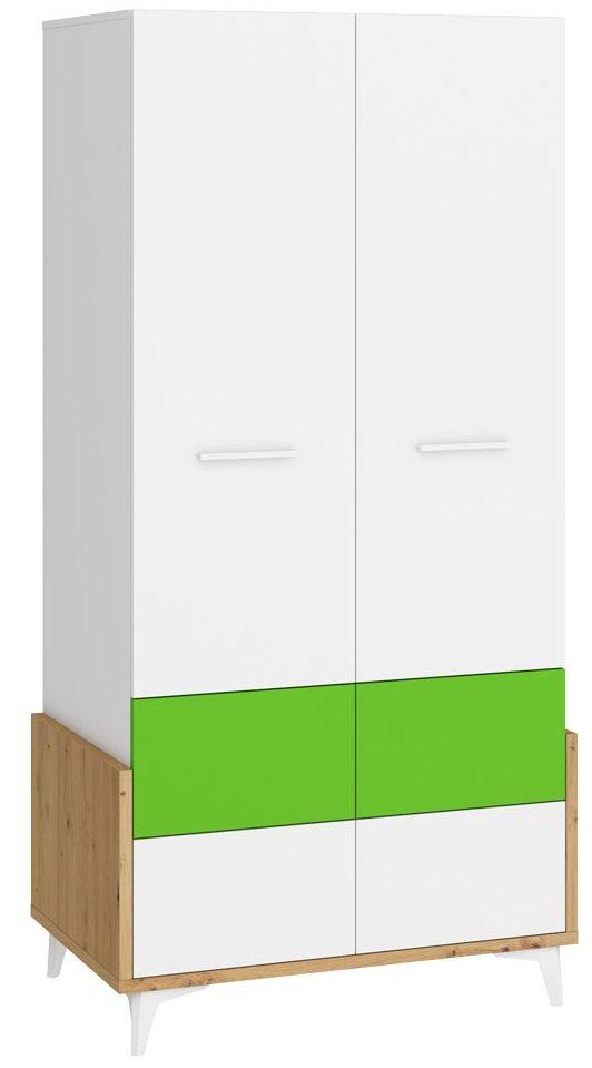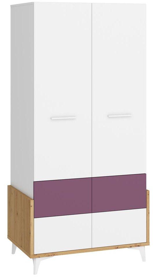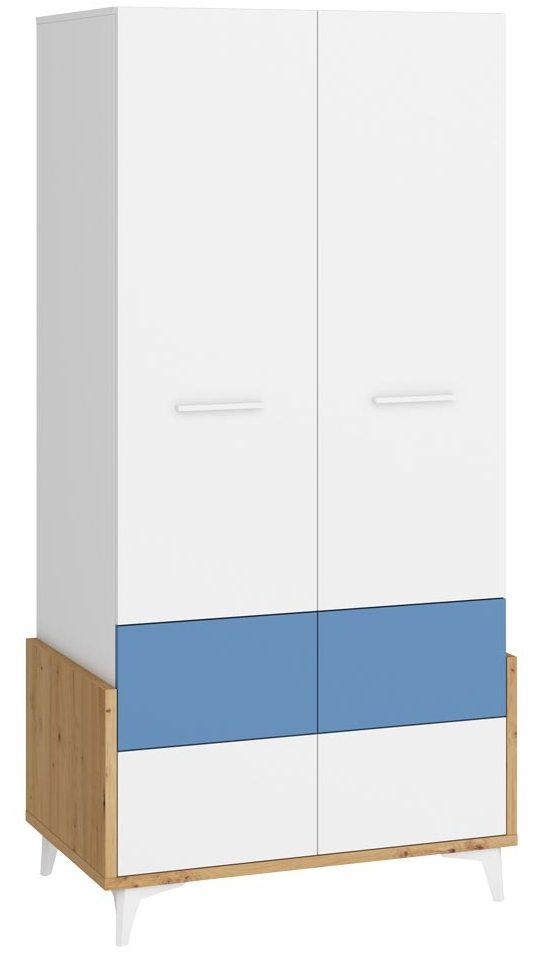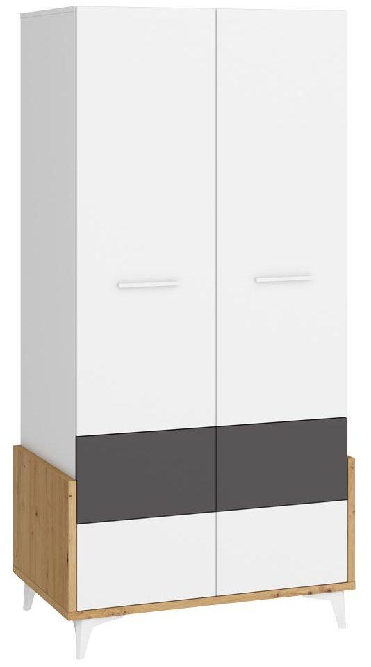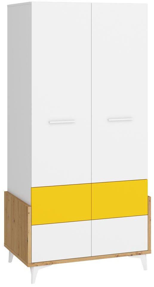 Szafa Hey 20 składa się z części dwudrzwiowej. Za drzwiami znajdują się trzy półki oraz drążek na wieszaki.