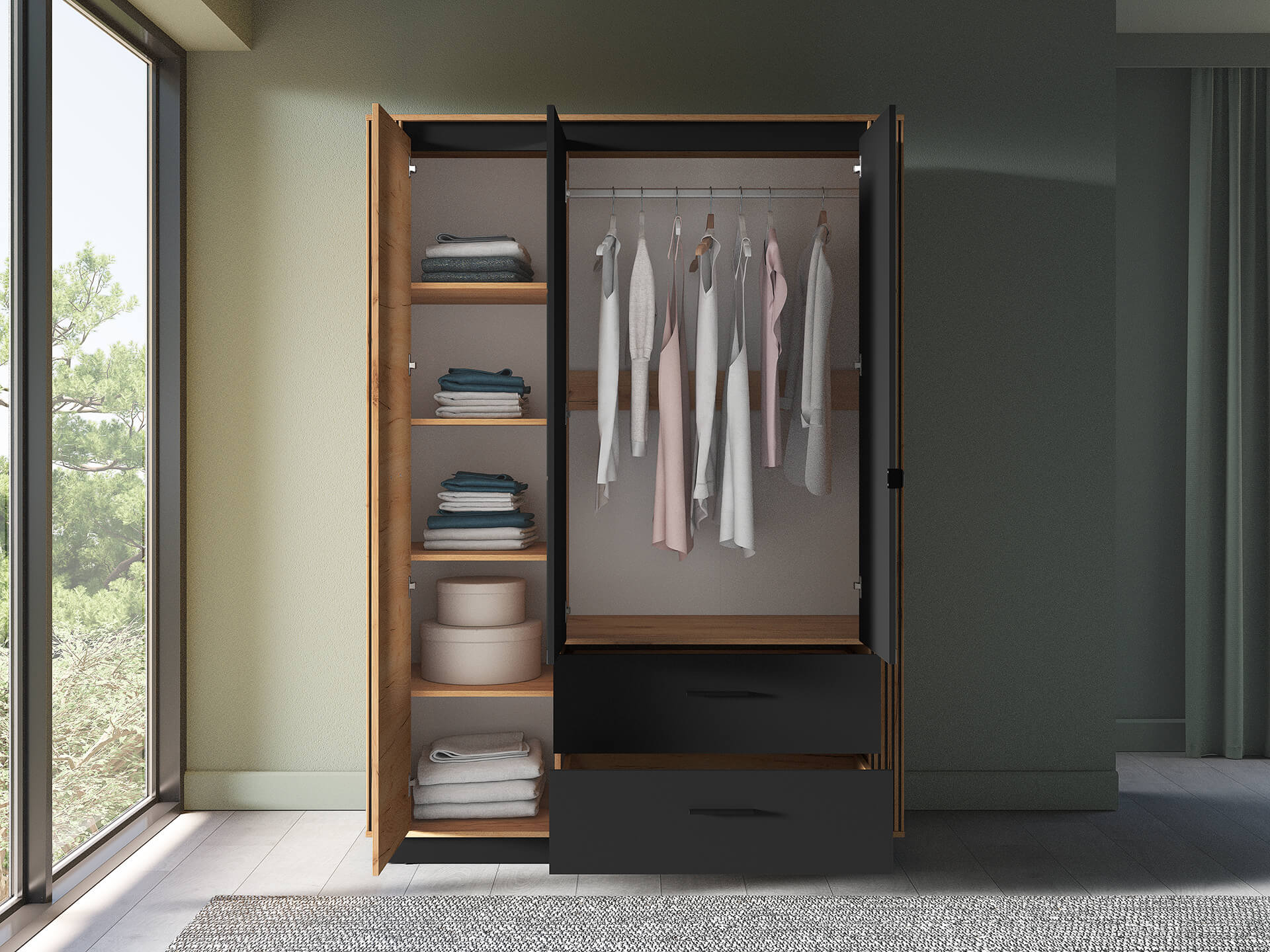 | Wymiary w cm | szerokość: 150 | wysokość: 210 | głębokość: 58 |