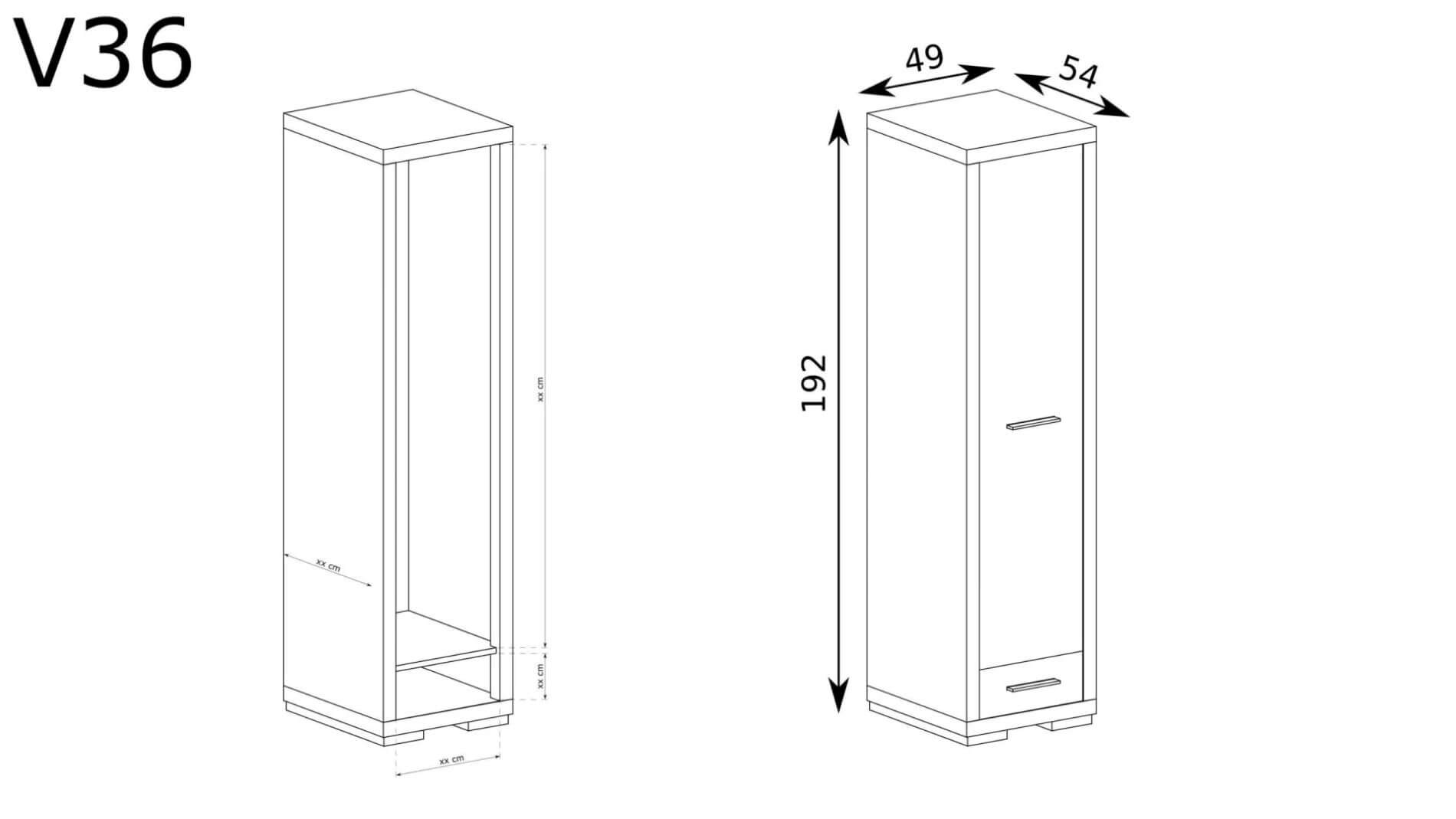 | Wymiary w cm | szerokość: 49 | wysokość: 192 | głębokość: 54 |