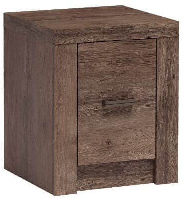 Prosta, mała i wygodna szafka nocna, idealna do sypialni. Można na nią położyć budzik, szklankę wody lub telefon. W środku znajduję się półka dzieląca przestrzeń na pół, pozwalająca na organizację. Metalowy uchwyt idealnie współgra z całością mebla. Dostępna w trzech wybarwieniach.