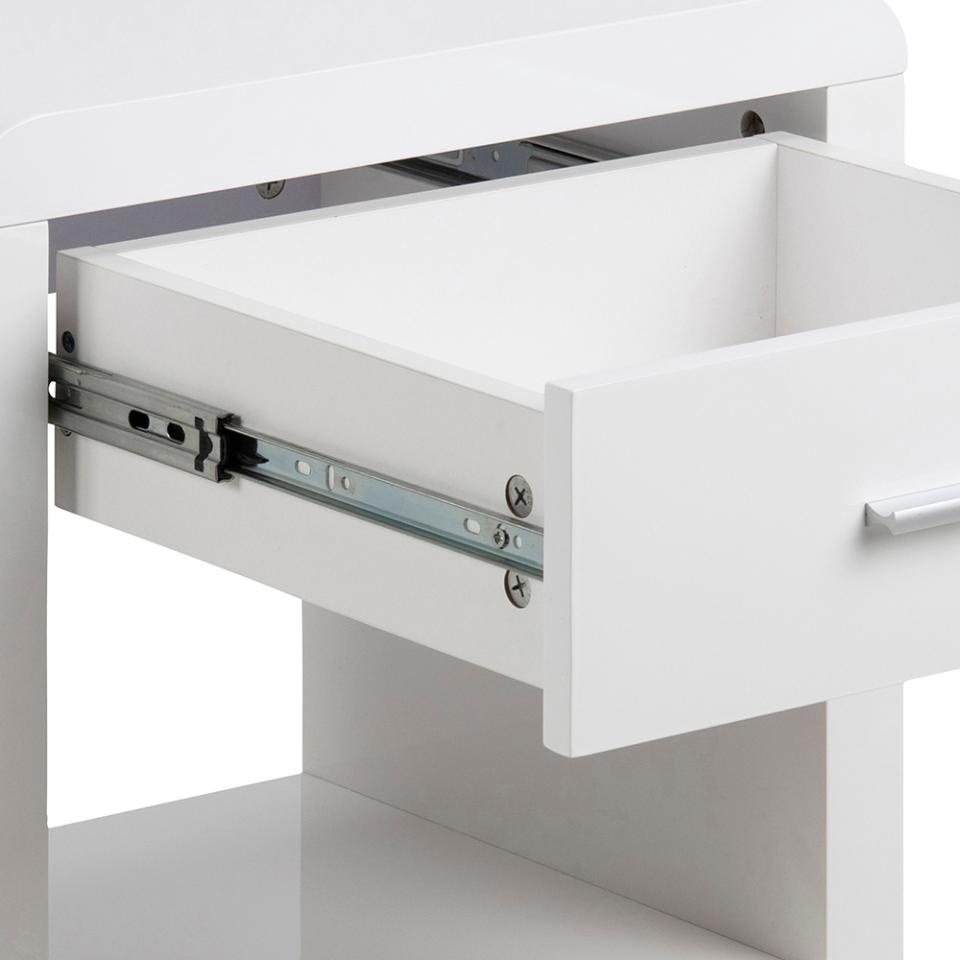 Szafka nocna Supernova wykonana została z płyty MDF wykończonej na wysoki połysk w kolorze białym. Posiada 1 szufladę oraz półkę.