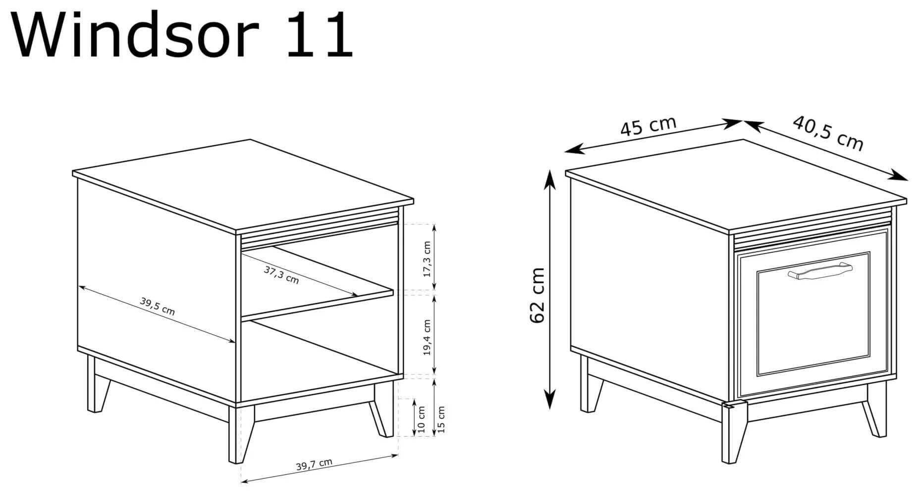 Kolekcja WINDSOR to propozycja dla osób ceniących ponadczasowy styl z nutą nowoczesnej elegancji. Szafka nocna WINDSOR – 11 to mebel, który wprowadza do sypialni nie tylko porządek, ale i spokój, harmonię oraz przytulny klimat.