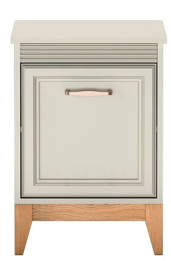 Szafka nocna WINDSOR – 11 to idealne uzupełnienie klasycznej sypialni, w której liczy się zarówno estetyka, jak i codzienna wygoda. Jej kompaktowe wymiary sprawiają, że z łatwością zmieści się nawet w mniejszych wnętrzach, nie tracąc przy tym na funkcjonalności. Fronty ozdobione subtelnym frezowaniem nadają całości elegancji, a dekoracyjna listwa podblatowa oraz uchwyt w kolorze miedzi dodają meblowi szlachetnego charakteru.