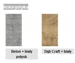– kolorystyka: beton (FRONT) + biały połysk, dąb craft ( FRONT) + biały połysk