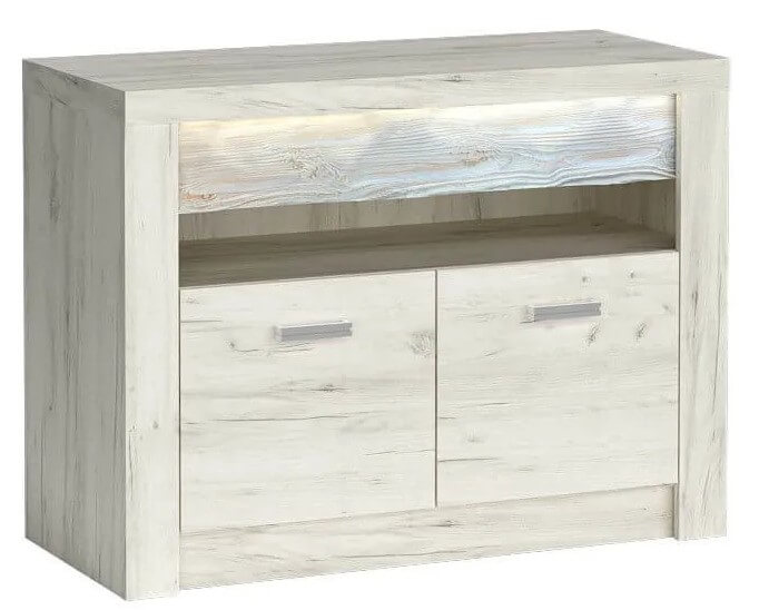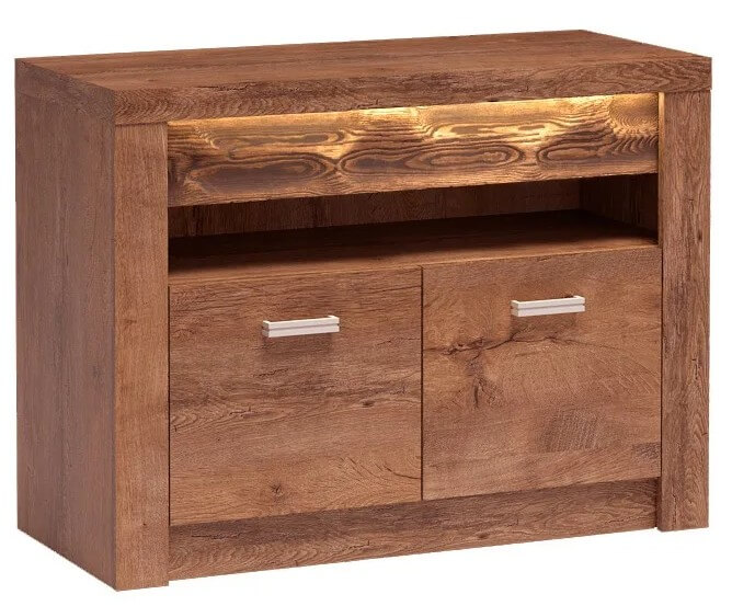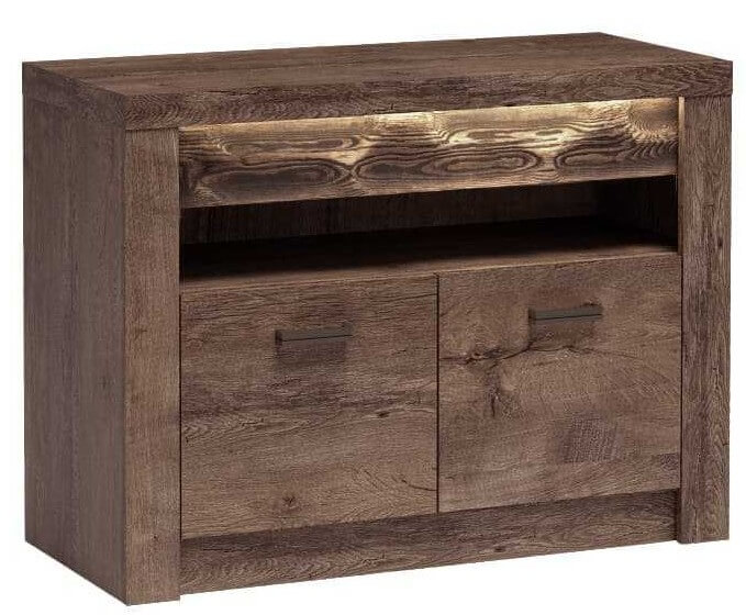 Mała szafka RTV z kolekcji Indianapolis. Idealna do małych pomieszczeń. Posiada jedną szafkę z pojemną półką w środku. Regał znajdujący się powyżej jest idealny na dekoder czy małe ozdoby. Metalowe uchwyty pokazują, że każdy detal jest przemyślany. Wpasuje się w wiele aranżacji, dostępna w trzech wybarwieniach.