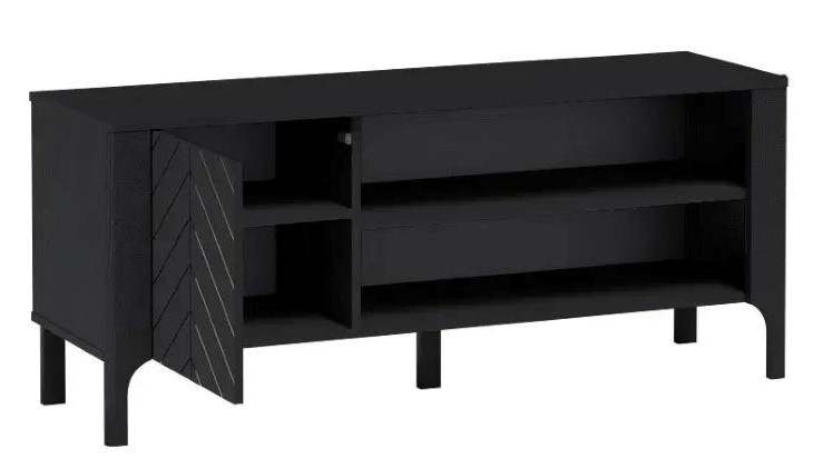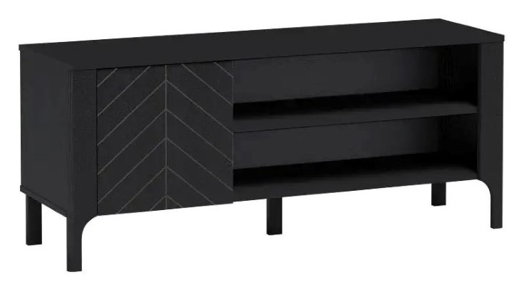 Szafka RTV Malumi to nowoczesne i praktyczne rozwiązanie do Twojego salonu. Prosty, minimalistyczny design w połączeniu ze stylowym wzorem na froncie sprawia, że mebel wpisuje się idealnie w aktualne trendy wnętrzarskie. Pojemna otwarta przestrzeń z półkami na sprzęt elektroniczny, takie jak dekodery, konsole czy odtwarzacze. Jedna zamykana szafka zapewnia miejsce na akcesoria, kable i inne drobiazgi. Dekoracyjny front z eleganckim wzorem w jodełkę podkreśla nowoczesny charakter mebla. Stabilne nogi i wysokiej jakości materiały gwarantują trwałość i bezpieczeństwo użytkowania. Głęboka czerń dodaje wnętrzu elegancji i doskonale współgra z różnymi stylami aranżacyjnymi. Dlaczego warto? Szafka RTV MALUMI MM-6 to mebel, który łączy funkcjonalność z estetyką. Jest idealnym wyborem dla osób ceniących elegancki styl i porządek w przestrzeni. Dzięki przemyślanej konstrukcji sprawdzi się zarówno w małych, jak i dużych salonach. Postaw na jakość i nowoczesny design – zamów już teraz!