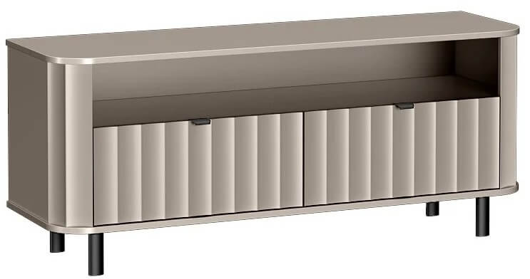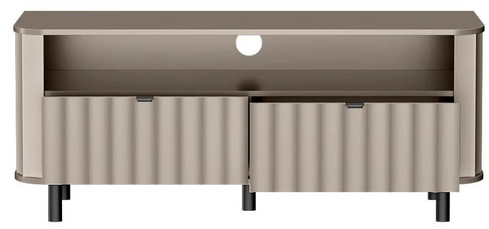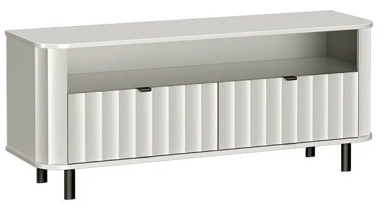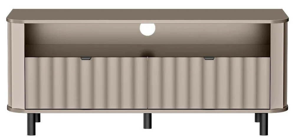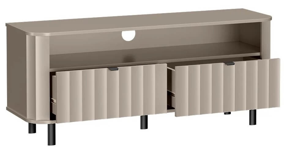 Model wyposażono w otwartą półkę, stworzoną z myślą o dekoderze, konsoli lub soundbarze – zapewniając łatwy dostęp do najczęściej używanego sprzętu. Dwie zamykane klapy ukrywają pojemne schowki, pozwalając na utrzymanie porządku i przechowywanie mniej reprezentacyjnych akcesoriów.