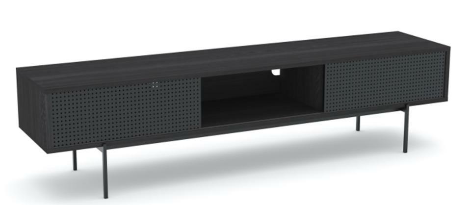 Szafka telewizyjna Angus to industrialny i nowoczesny mebel, który idealnie skomponuje się ze ścianką multimedialną. Szafka to połączenie korpusu z płyty meblowej oraz metalowej czarnej podstawy. Okleina użyta do produkcji szafki imituje słoje drewna jesionu. Metalowa podstawa została pomalowana proszkowo o wykończeniu matowym. Czarna szafka pod telewizor Angus jest elementem serii mebli Angus. Meble te charakteryzują się prostą bryłą i ciekawym wykończeniem. Cała kolekcja utrzymana jest w czerni. Wymiary opakowania: 146x44x9 cm Waga: 22 kg