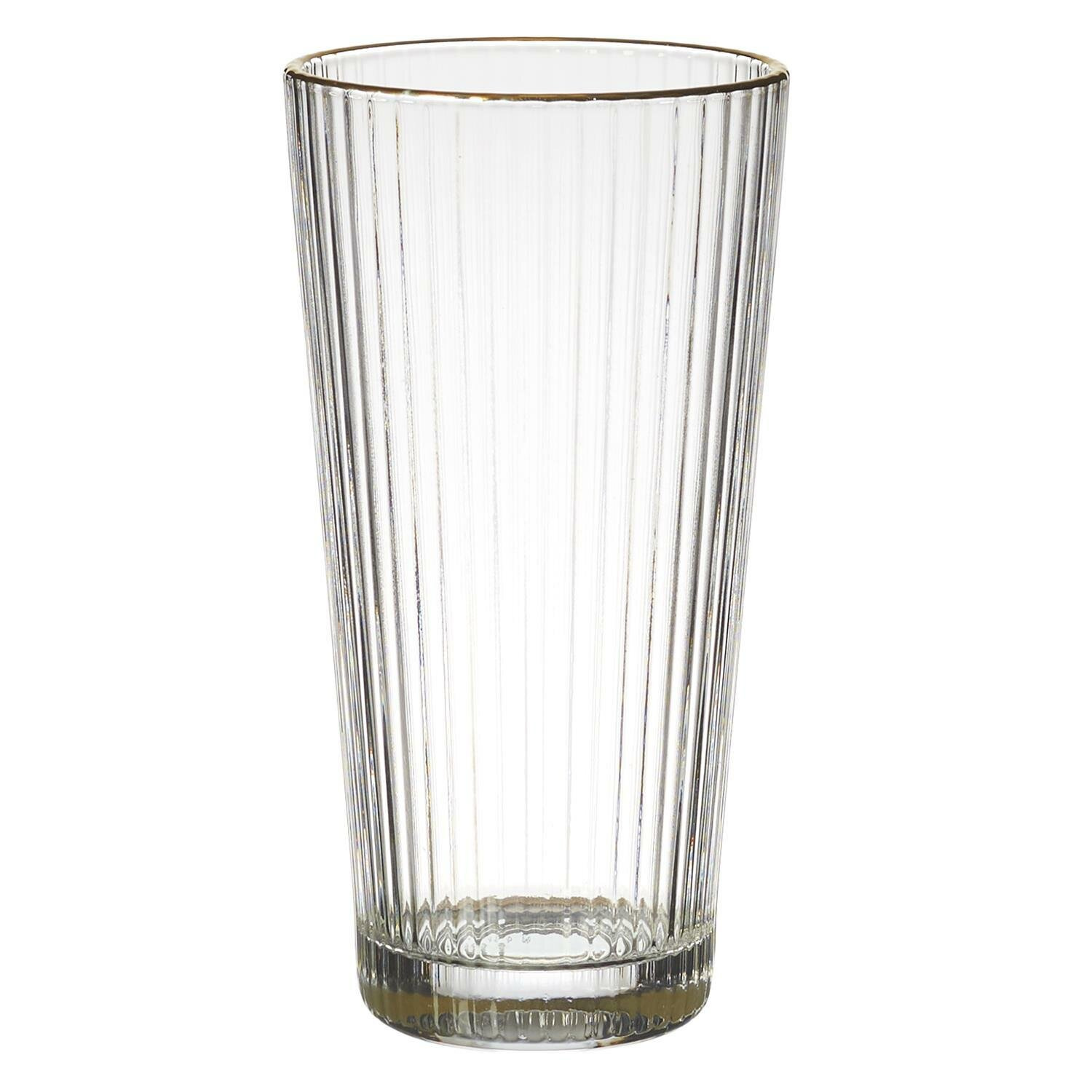 Szklanka Gold Edge to seria eleganckich i dekoracyjnych szklanek, które dodają naszej zastawie stołowej luksusowego i ponadczasowego wyglądu. Szklanka o pojemności 300ml wykonana została ze szkła. Pofalowana tafla szkla sprawia, że szklanka ciekawie prezentuje się na stole z napojem. Brzeg szklanki o złotym kolorze dodaje całości blasku.