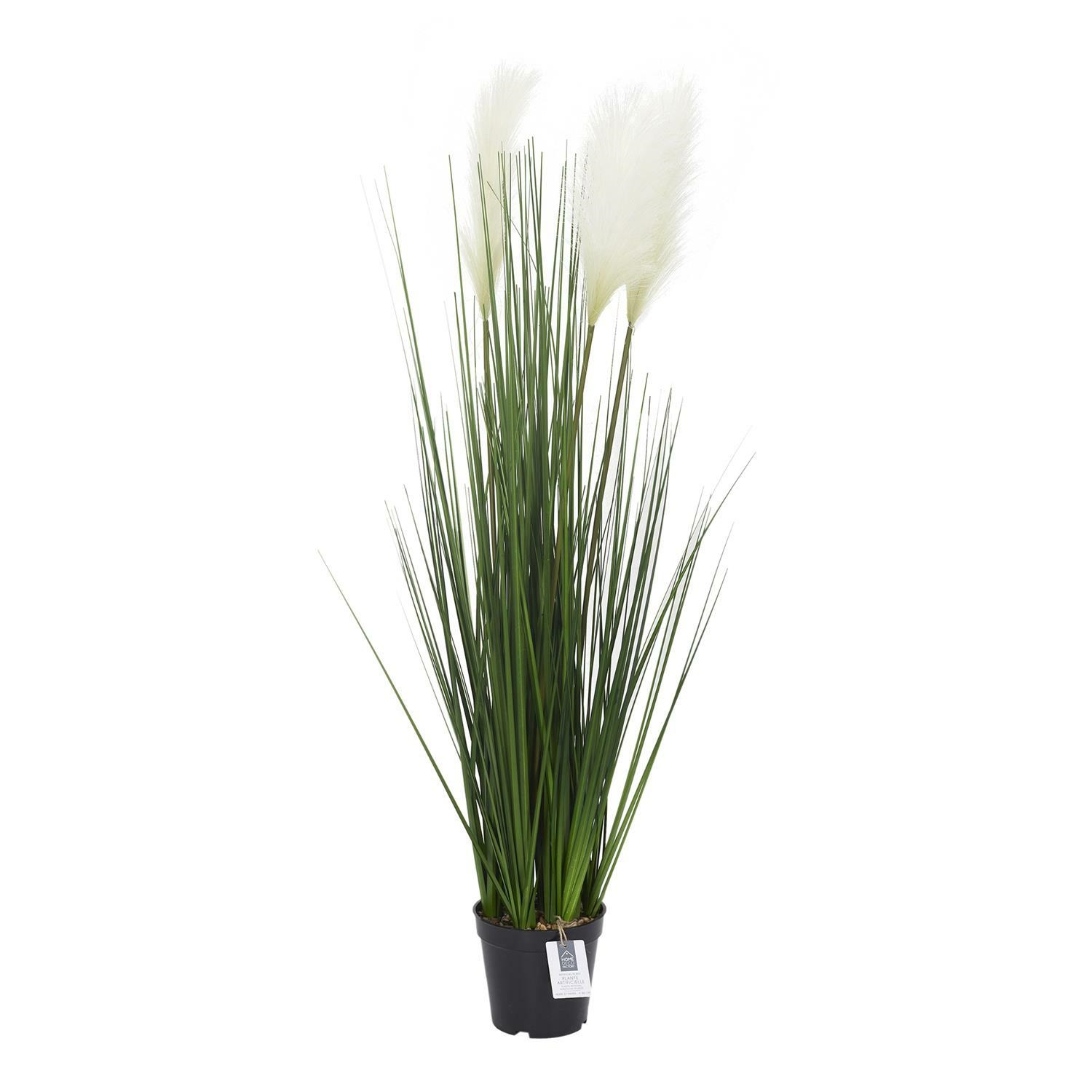 Sztuczna trawa pampasowa z tworzywa sztucznego to dekoracja idealnie odwzorująca naturalną roślinę. Trawa pampasowa w doniczce o średnicy 13 cm postawiona w rzędzie może stworzyć ciekawy element odgradzający stoliki w restauracji lub stworzy na balkonie swoisty żywopłot, który ochroni nas przed ciekawskimi spojrzeniami sąsiadów. Trawa pampasowa o wysokości aż 90 cm to dekoracja, która nada świeżego looku w pomieszczeniach bez dostępu do światła, np. w ciemnej kuchni lub łazience bez okna. Wymiary opakowania: 94x42x27 cm