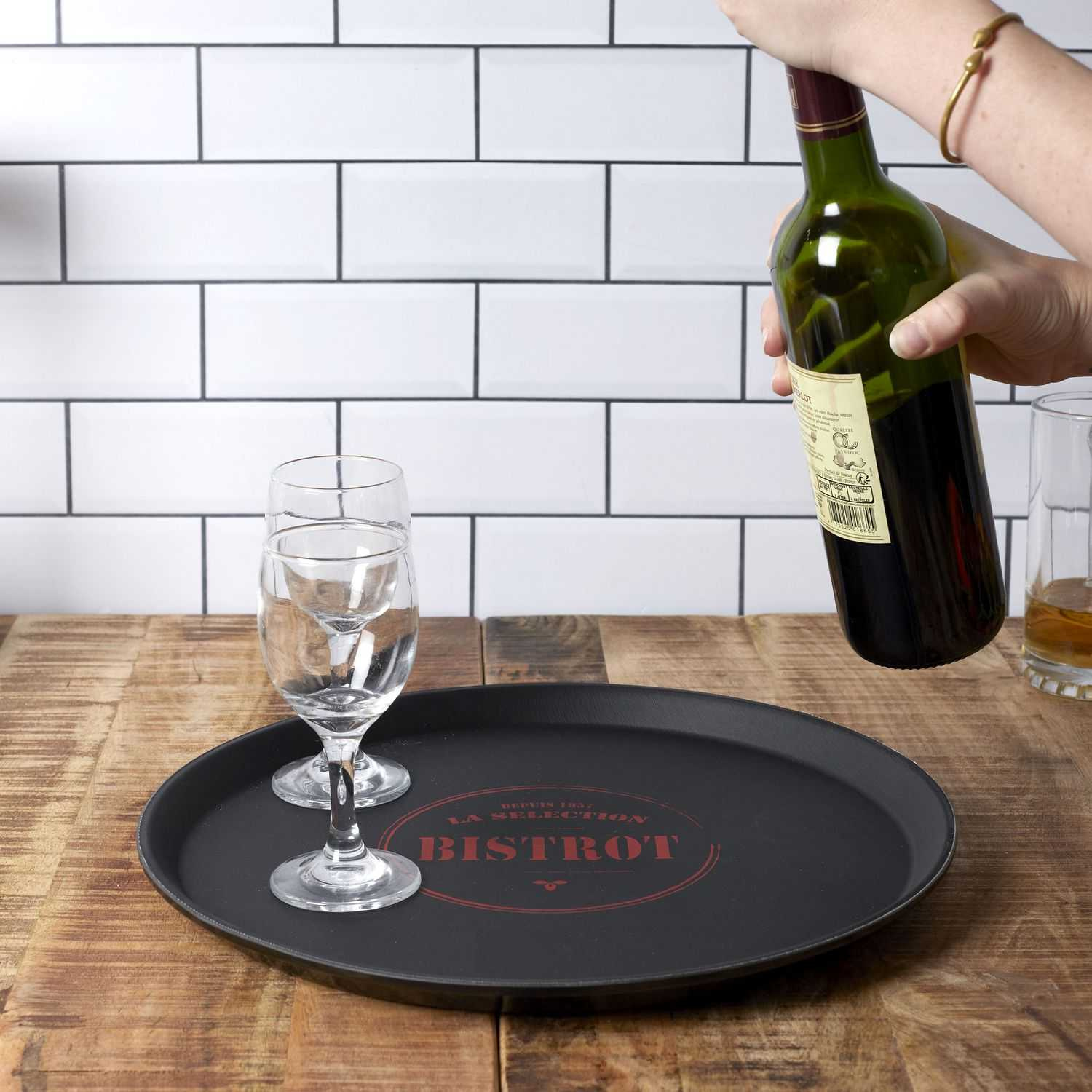 Taca Bistrot, dwukolorowa z ilustracjami w typowym duchu Bistro w ciekawy sposób zaprezentuje przystawki! Taca idealna na zimną płytę lub do podania pizzy. Taca została zrobiona z wytrzymałego tworzywa, dzięki czemu się nie potłucze ani nie od szczerbi. Wymiary opakowania: 10,50 x 38,50 x 36,50cm