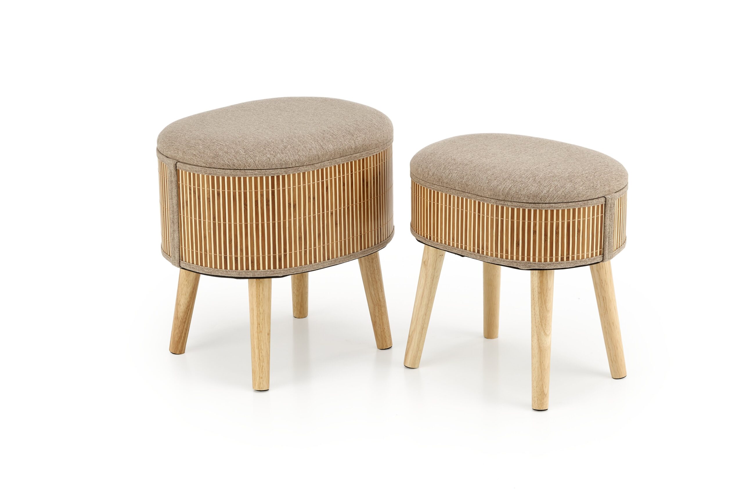 zestaw 2 puf z funkcją pojemnika, wymiary: 49/43/46 cm oraz 41/34/38 cm, materiał: drewno lite – kauczukowe / tkanina, kolor: beżowy – naturalny