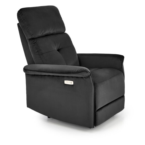 SEMIR fotel z funkcja elektrycznego rozkładania / gniazdo USB, czarny