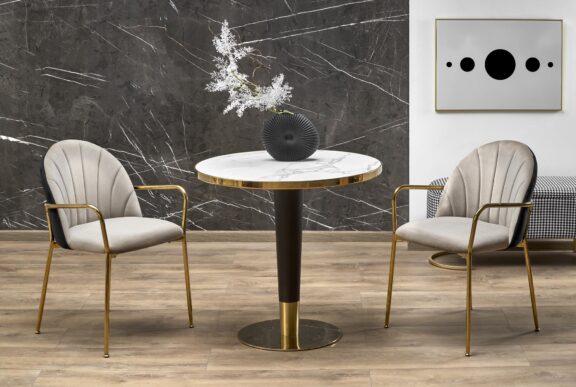 MORATA stół okrągły, biały marmur / czarny / złoty