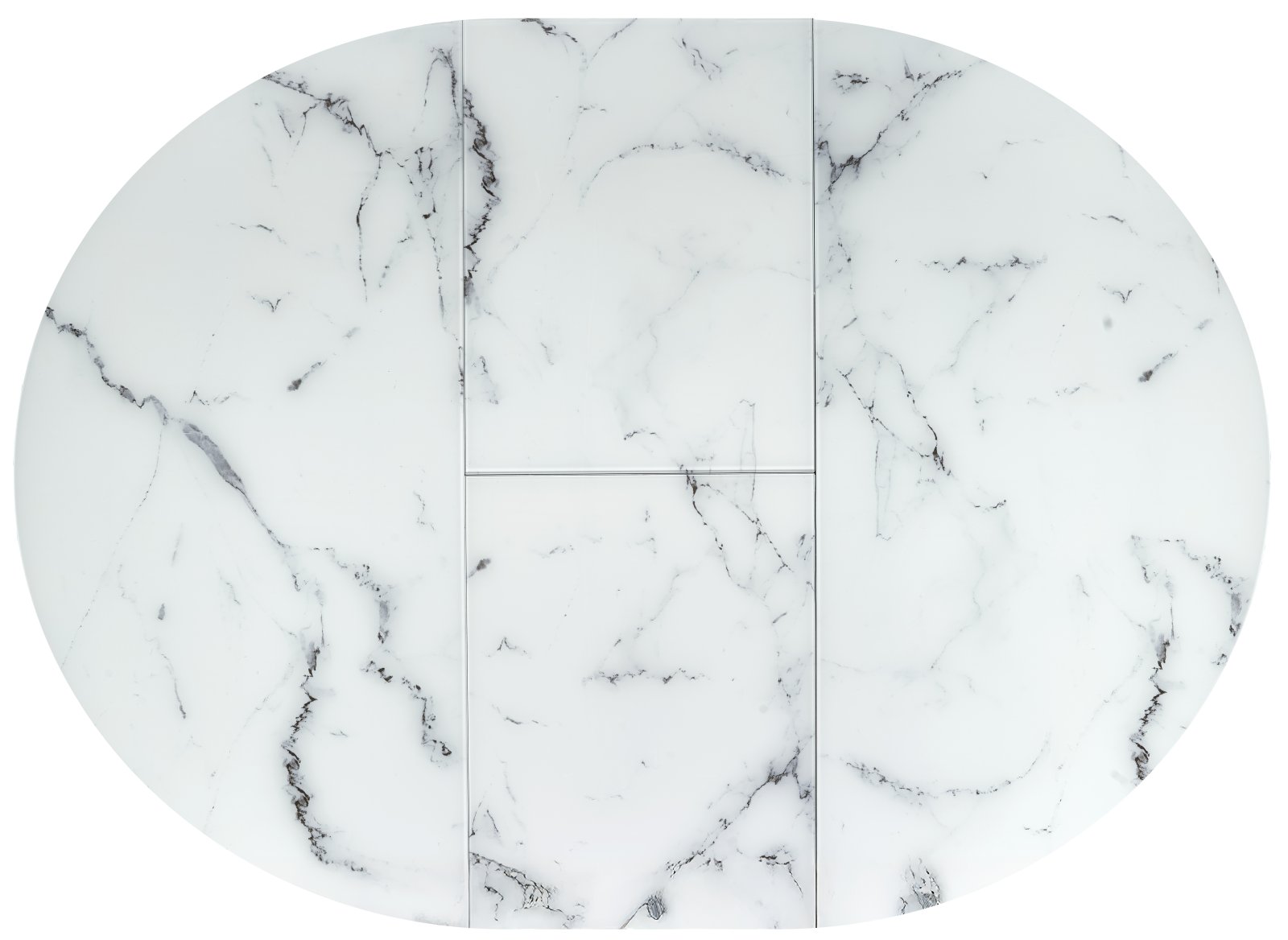 stół rozkładany, wymiary: 130-180/130/76 cm, materiał: szkło / MDF lakierowany / stal malowana proszkowo, kolor: blat – biały marmur, nogi – czarny