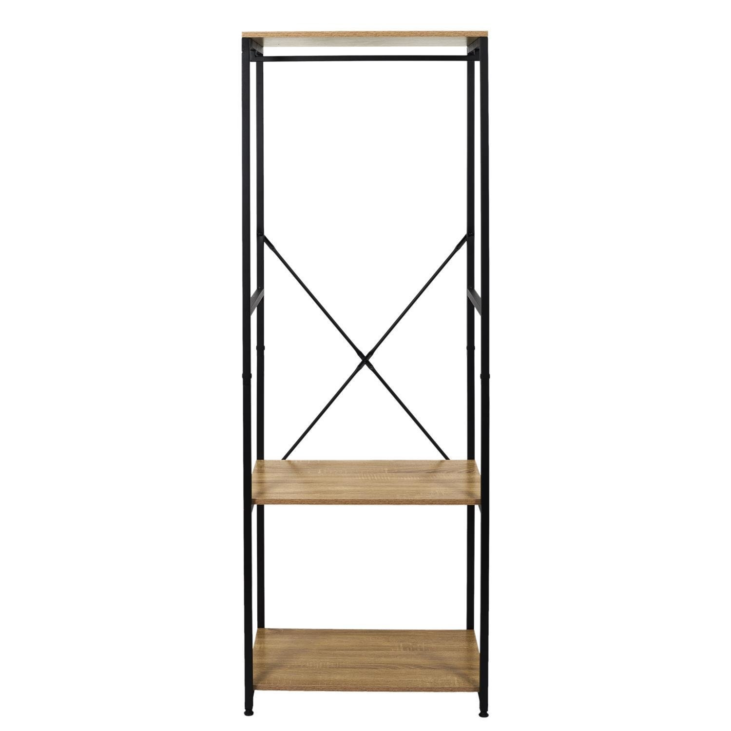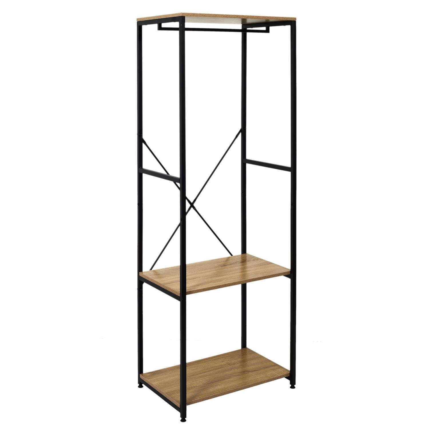 Garderoba Lukis to idealny mebel do przedpokoju lub do garderoby. Wieszak-garderoba Lukis to połączenie dwóch pojemnych półek oraz wieszaka. Całość zamknięta w efektownym szkielecie z metalu malowanego proszkowo oraz wykończona półkami z płyty MDF. Laminat imitujący drewno sprawdzi się we wnętrzu loftowym.
