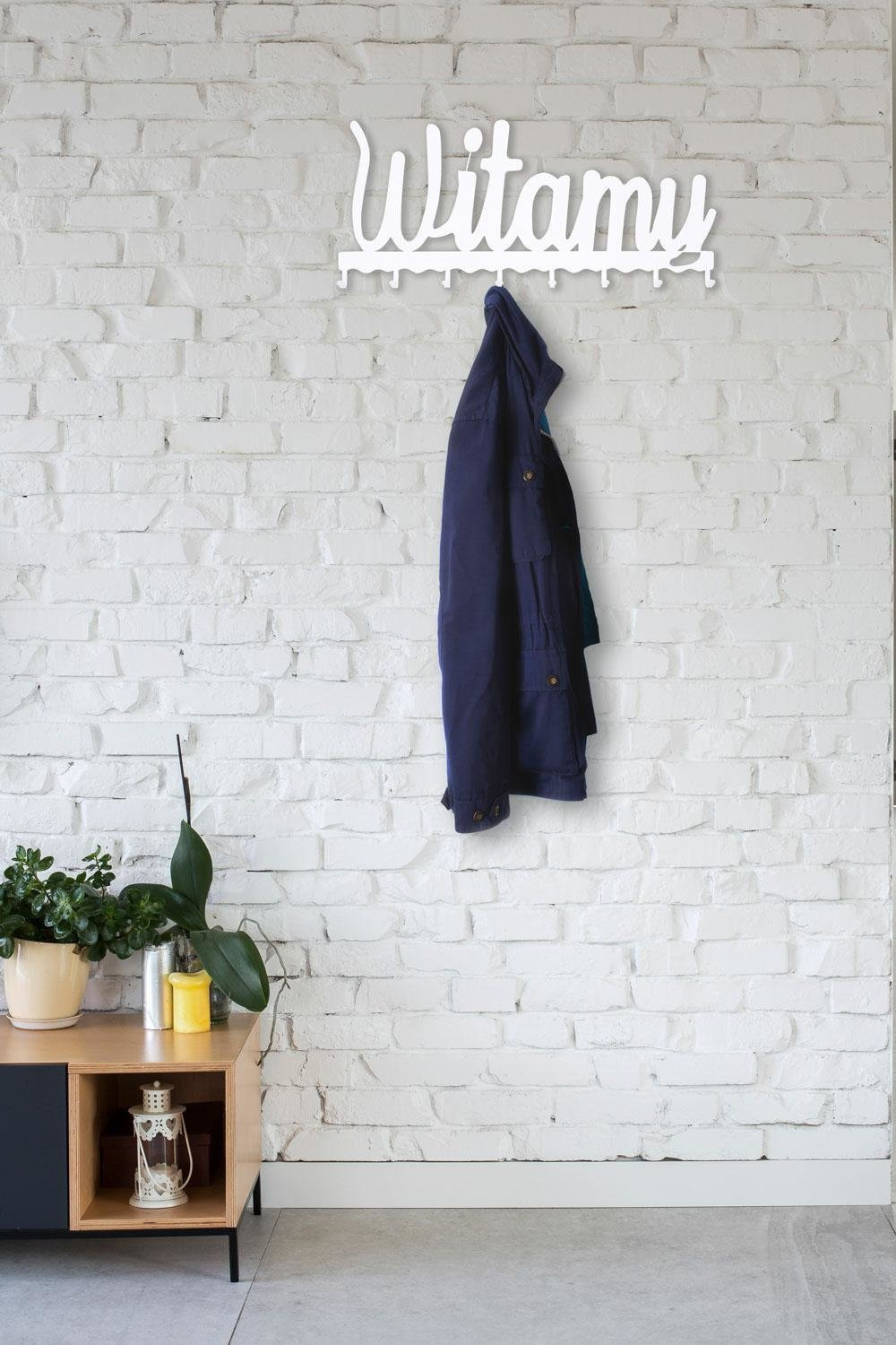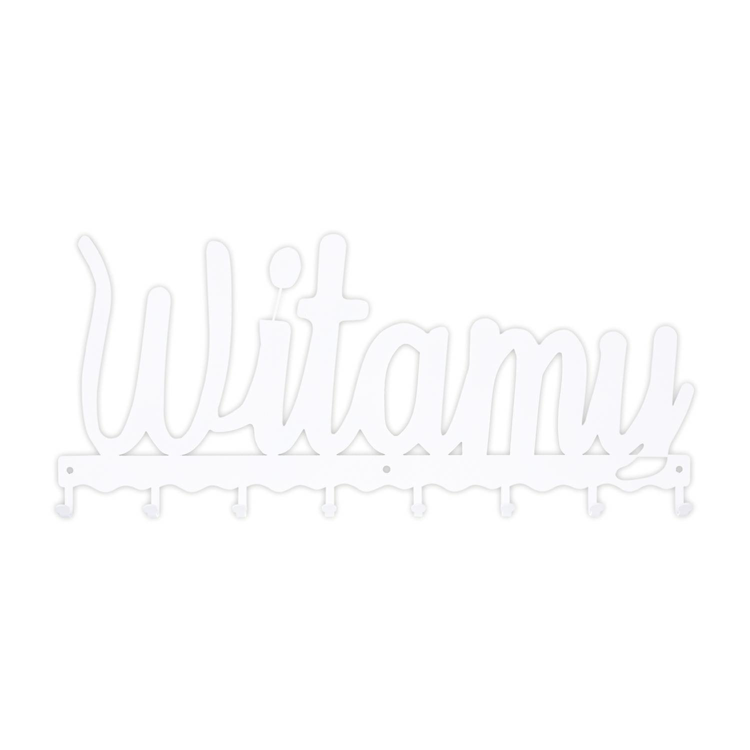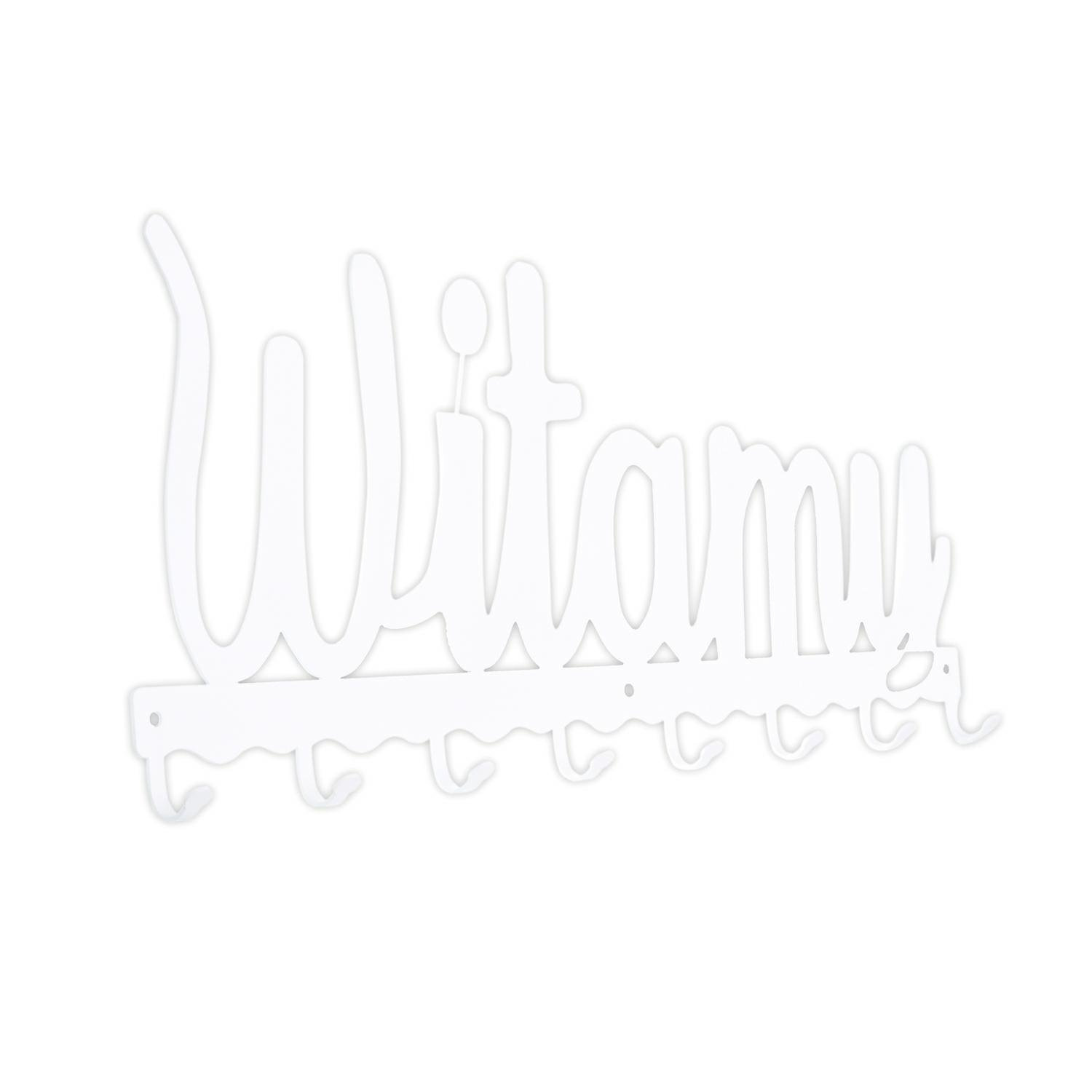 Wieszak ścienny Witamy to nowoczesne rozwiązanie do przedpokoju, holu lub poczekalni. Jego precyzyjnie wycięty laserowo wzór, z napisem witającym gości, nada uroku każdemu wnętrzu. Stalowy malowany proszkowo wieszak jest uniwersalny oraz odporny na uszkodzenia. Matowe wykończenie dodaje listwie stylu. Dzięki aż 8 haczykom o udźwigu do 3kg każdy, możemy powiesić na wieszaku klucze, kurtki lub nawet torby. Produkt dostępny jest w dwóch kolorach co zwiększa jego możliwości aranżacyjne. Maksymalne obciążenie to 24kg. Do wieszaka załączany jest zestaw montażowy, który składa się z kołków, zaślepek i śrubek.