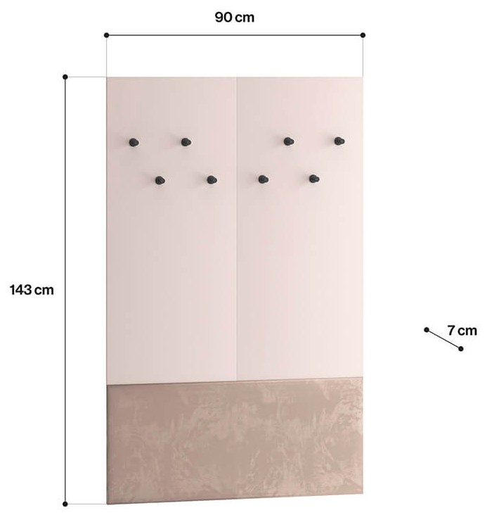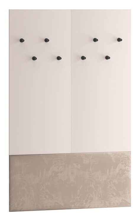 Wieszak Voco 07 to niezbędny mebel do przedpokoju. Prosty design sprawia, że doskonale dopełni każde wnętrze. Mebel składa się z ośmiu wytrzymałych haczyków na odzież wierzchnią. Tego typu wieszak gwarantuje szybkość i łatwość sięgania po potrzebne ubrania. Dolna część mebla to miękka, tapicerowana powierzchnia, która sprawdzi się jako wygodne oparcie. Welurowa tkanina wprowadzi do wnętrza poczucie ciepła i elegancji. Wieszak idealnie pasuje do szafek na buty Voco.