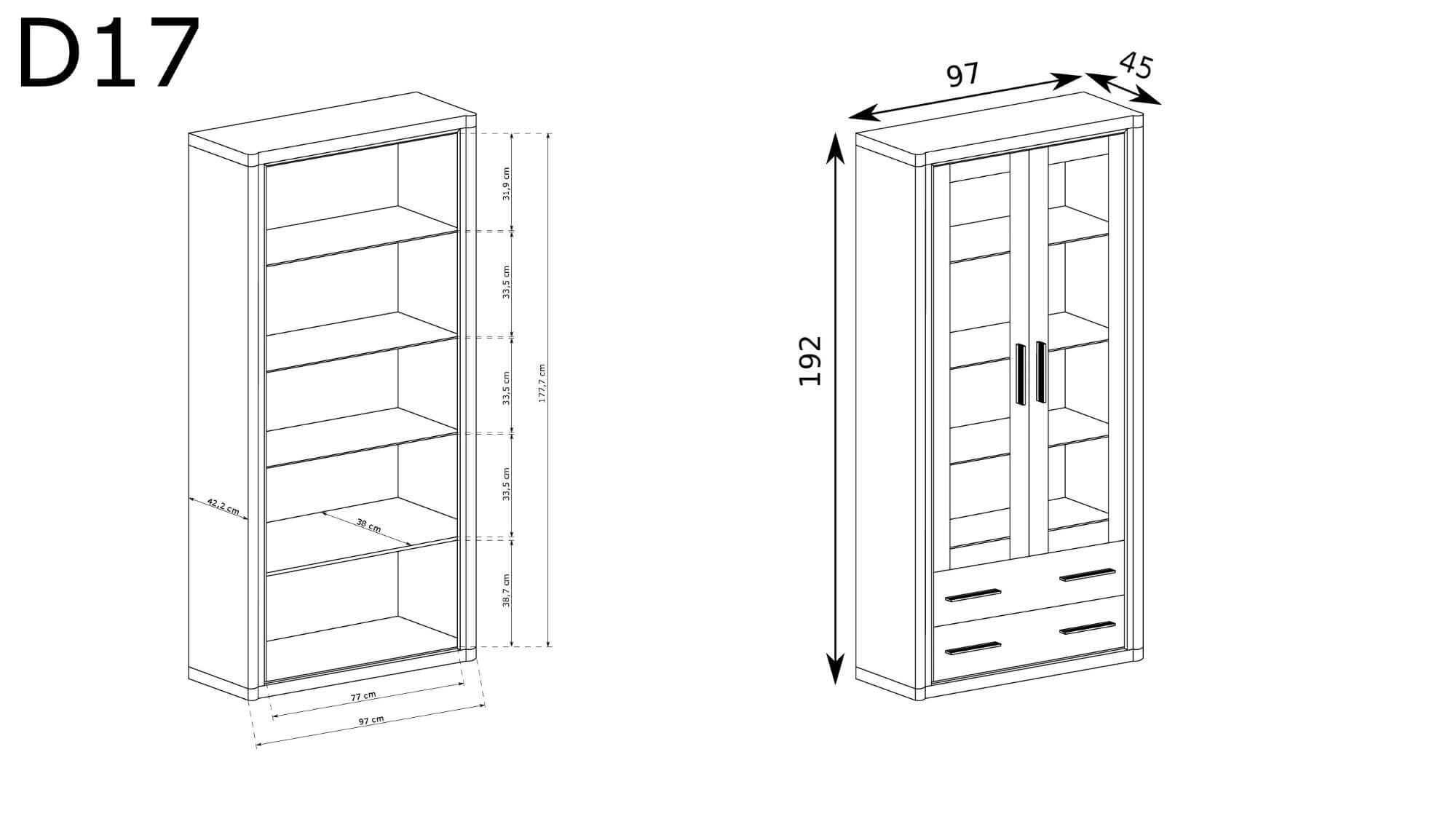 | Wymiary w cm | szerokość: 97 | wysokość: 192 | głębokość: 45 |