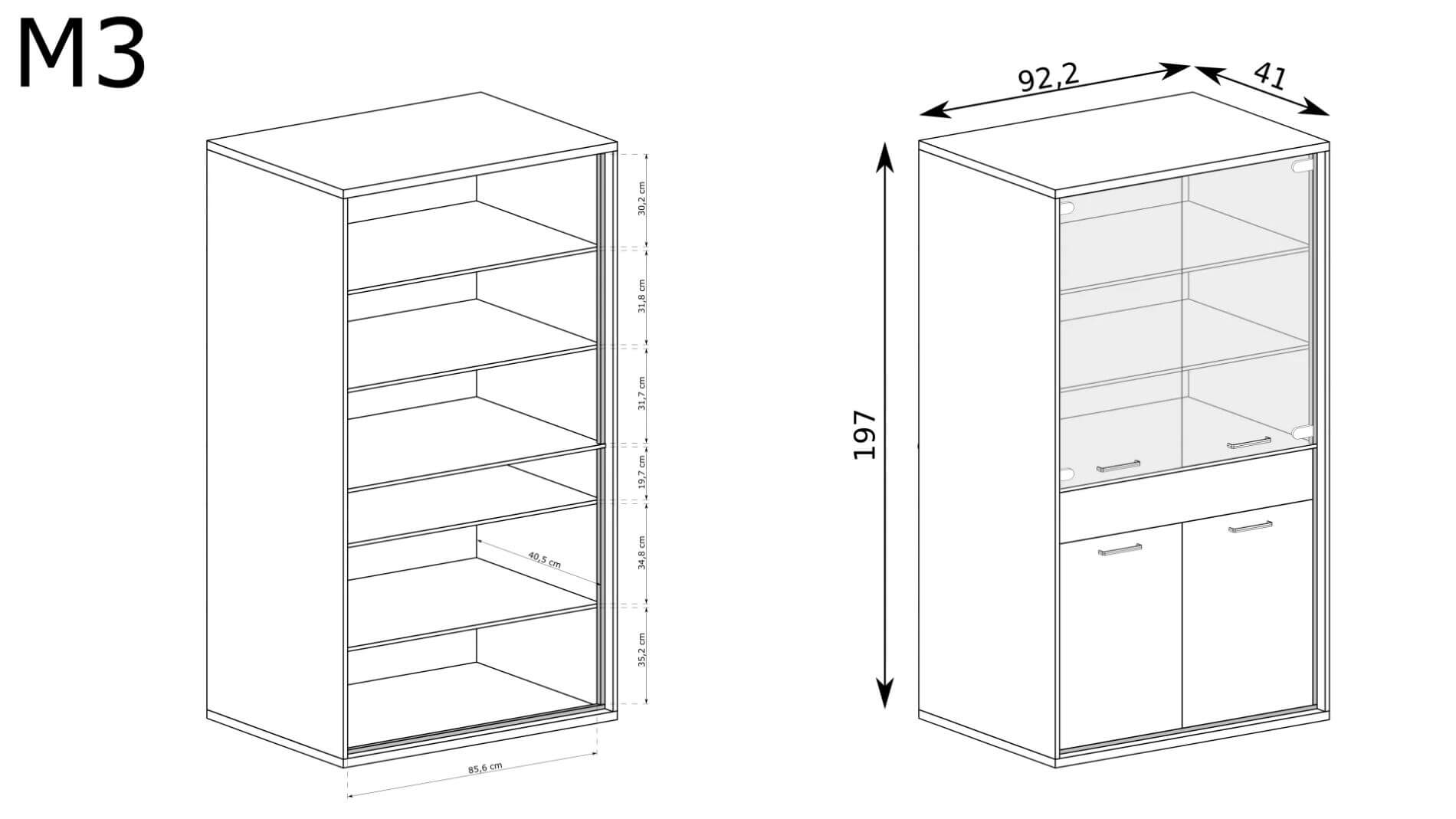 | Wymiary w cm | szerokość: 92,2 | wysokość: 197 | głębokość: 41 |