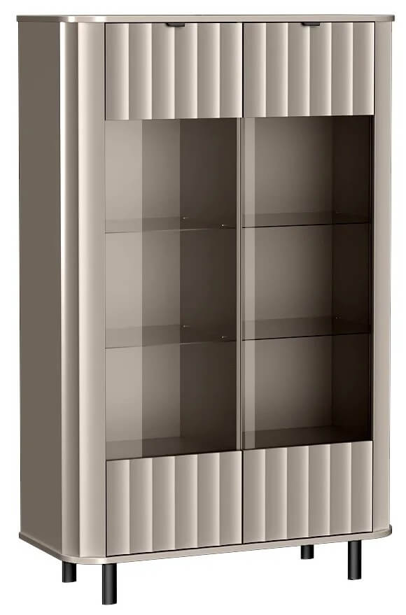 NOVADO-9 – przeszklona witryna do salonu Witryna NOVADO-9 to elegancka gablota, która pozwala wyeksponować to, co najpiękniejsze. Cztery szklane półki zapewniają przestrzeń na dekoracje, książki czy porcelanę, jednocześnie nadając meblowi lekkości i nowoczesnego charakteru. Zaokrąglone krawędzie, metalowe uchwyty i owalne nogi nadają całości wyjątkowego stylu, charakterystycznego dla kolekcji NOVADO. Witryna sprawdzi się zarówno w salonie, jak i jadalni – tworząc praktyczne, a zarazem dekoracyjne uzupe
