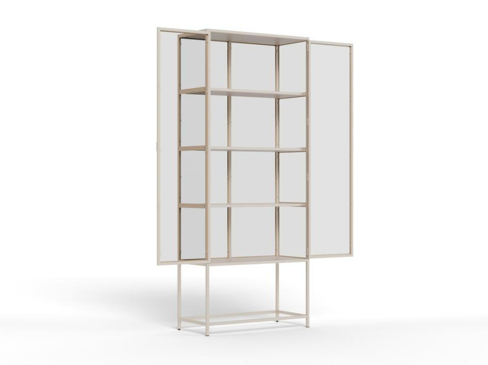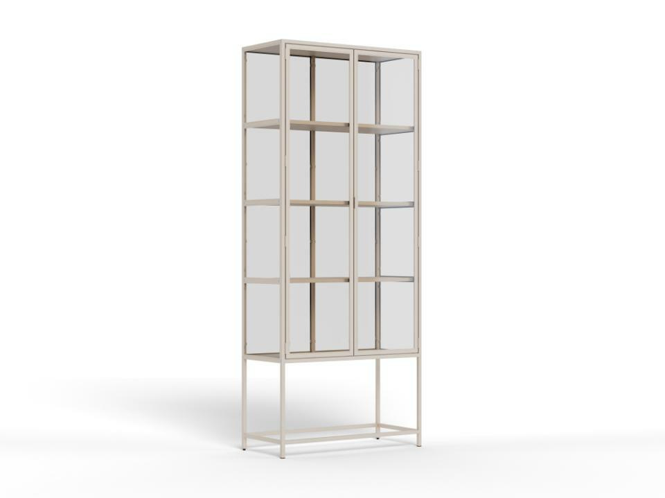 Wykonana z ramy z szarej stali i przezroczystego szkła hartowanego, ta witryna jest atrakcyjna wizualnie i chroni Twoje ulubione przedmioty przed kurzem. Wyposażona w dwoje szklanych drzwi, które chronią przed kurzem, oraz cztery szare półki z łatwą w pielęgnacji powierzchnią, jest idealnym miejscem do przechowywania zastawy stołowej i dekoracji, które zasługują na wyeksponowanie.