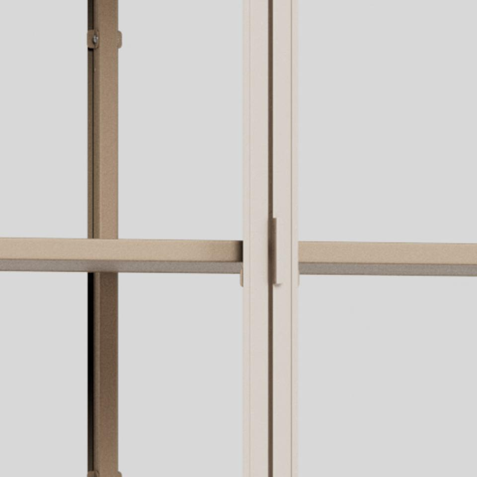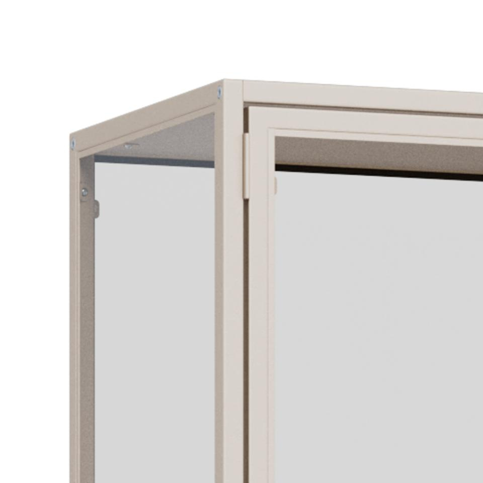 Rama wykonana z szarej stali malowanej proszkowo i przezroczystego szkła hartowanego