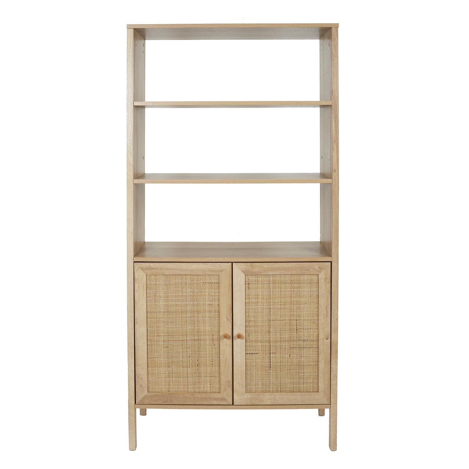 Wysoki regał Bali to dopełnienie kolekcji w stylu boho. Mebel o naturalnym wykończeniu z elementem plecionki na frontach szafki wpisze się do wnętrz osób ceniących sobię naturę oraz kolory ziemi. Wyjątkowy regał łączący w sobie 3 szerokie półki oraz szafkę może posłużyć jako kredens na zastawe stołową lub regał na książki. Regał posiada wysokie nóżki, dzięki czemu łatwo jest pod nim odkurzyć. Wymiary opakowania: 167x12x41cm. Waga: 12kg