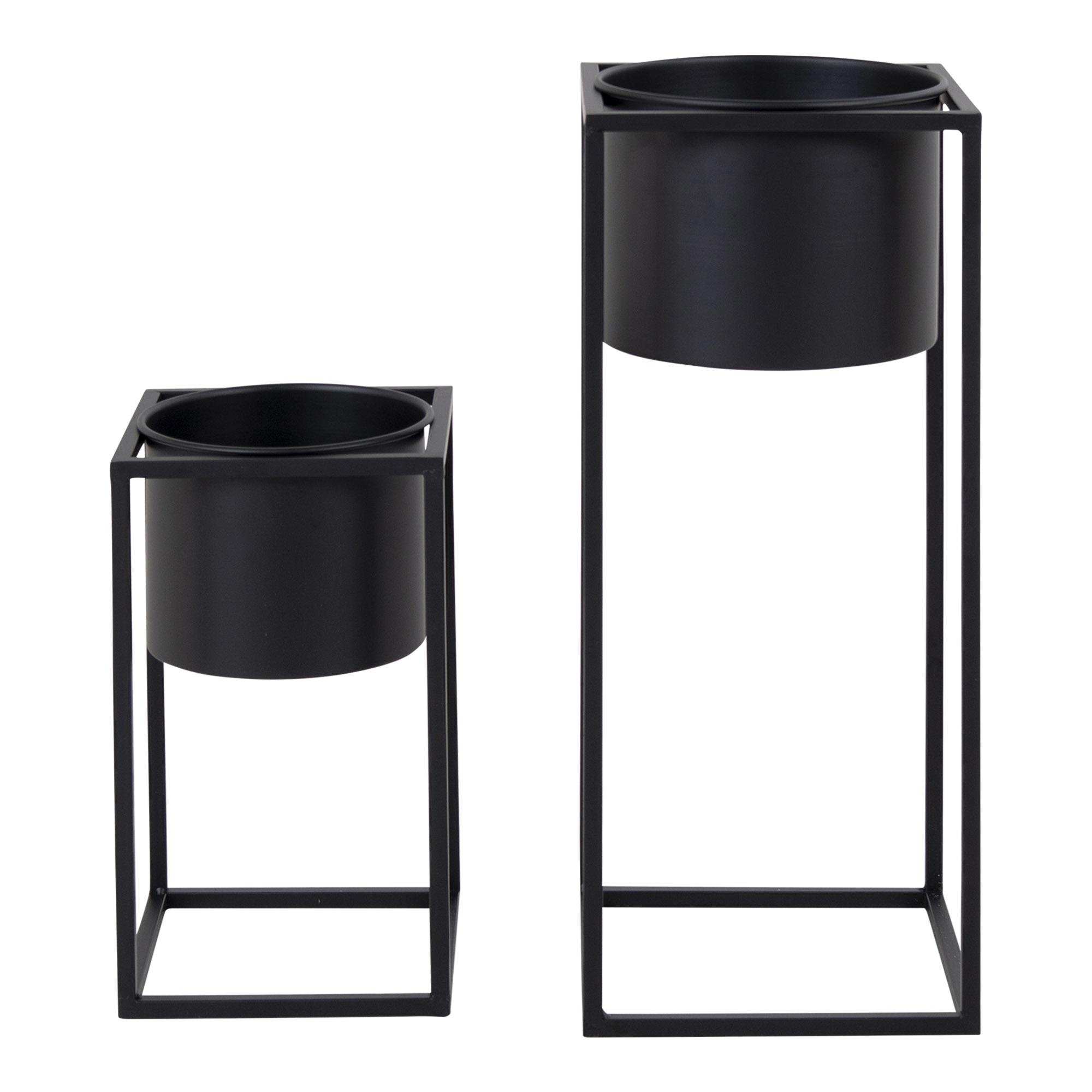 Zestaw dwóch kwietników z metalu malowanego proszkowo. Wymiary: większy: wysokość: 50,5 cm, szerokość: 19,5 cm, głębokość: 19,5 cm mniejszy: wysokość: 31cm, szerokość: 17 cm, głębokość 17 cm Wymiary opakowania: 22x22x53 cm Waga paczki: 2,4 kg