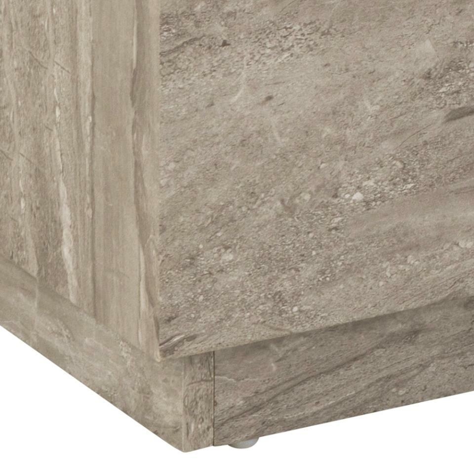 Komplet dwóch stolików w formie sześcianów (100x60x42;44x44x38). Pokryte są laminatem o wzorze beżowego trawertynu. Stoliki będą świetnie wyglądać w eleganckim salonie. Mogą również pełnić funkcję kwietników. Od spodu posiadają niewielkie plastikowe nóżki zabezpieczające podłogę przed niszczeniem. Ilość kartonów: 1 Wymiary kartonów: 112x66x44cm Waga kartonów: 24,2kg