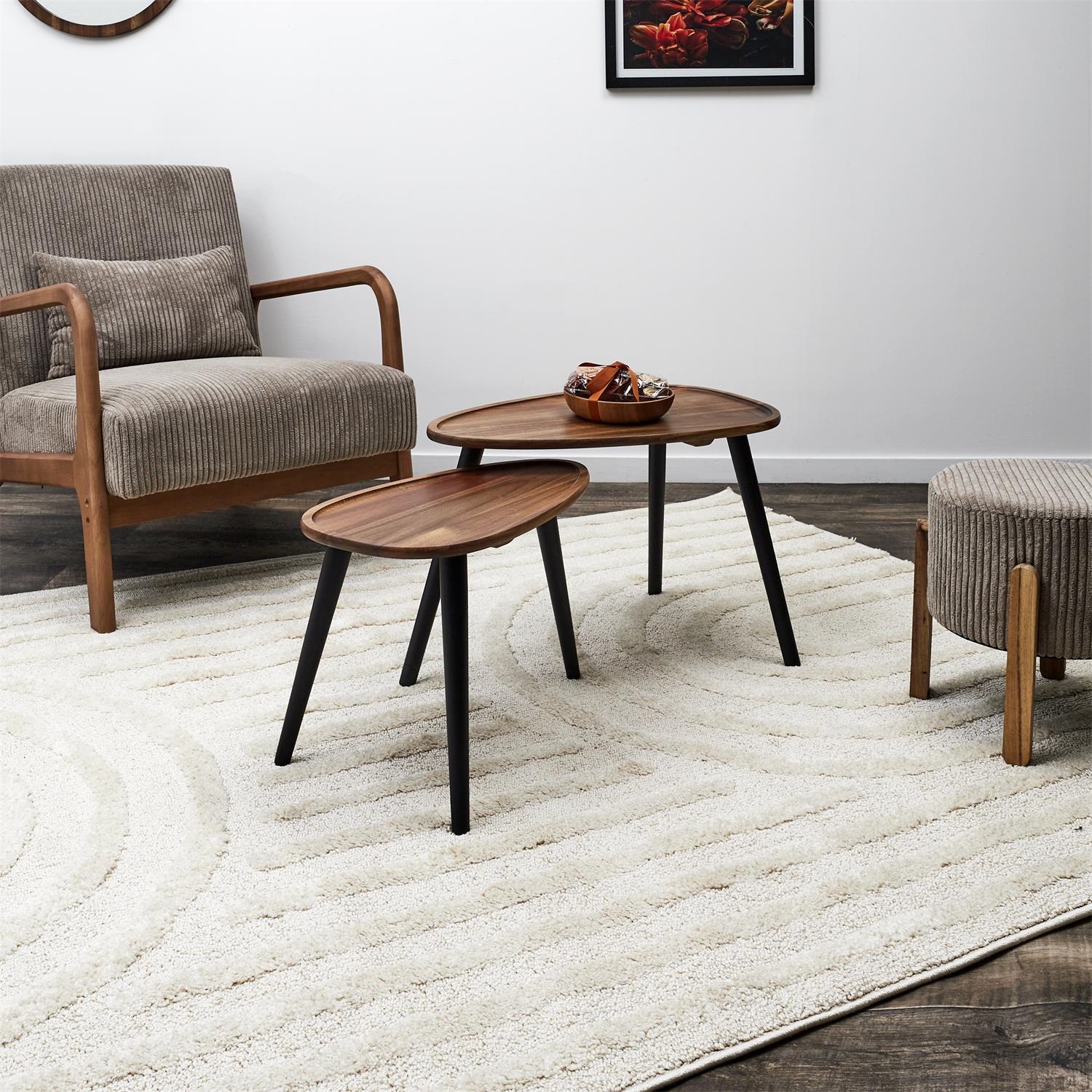 Zestaw dwóch drewnianych stolików kawowych Noby sprawdzi się zarówno w dużym jak i małym salonie. Stoliki wykonane z drewna akacji jako blat oraz drewna sosnowego jako nogi są w 100% wykonane z naturalnych materiałów. Stoliki można zestawić ze sobą, można postawić jeden pod drugim, albo postawić je całkowicie oddzielnie. Stoliki wymagają montażu. Max. obciążenie na jeden stolik 15kg