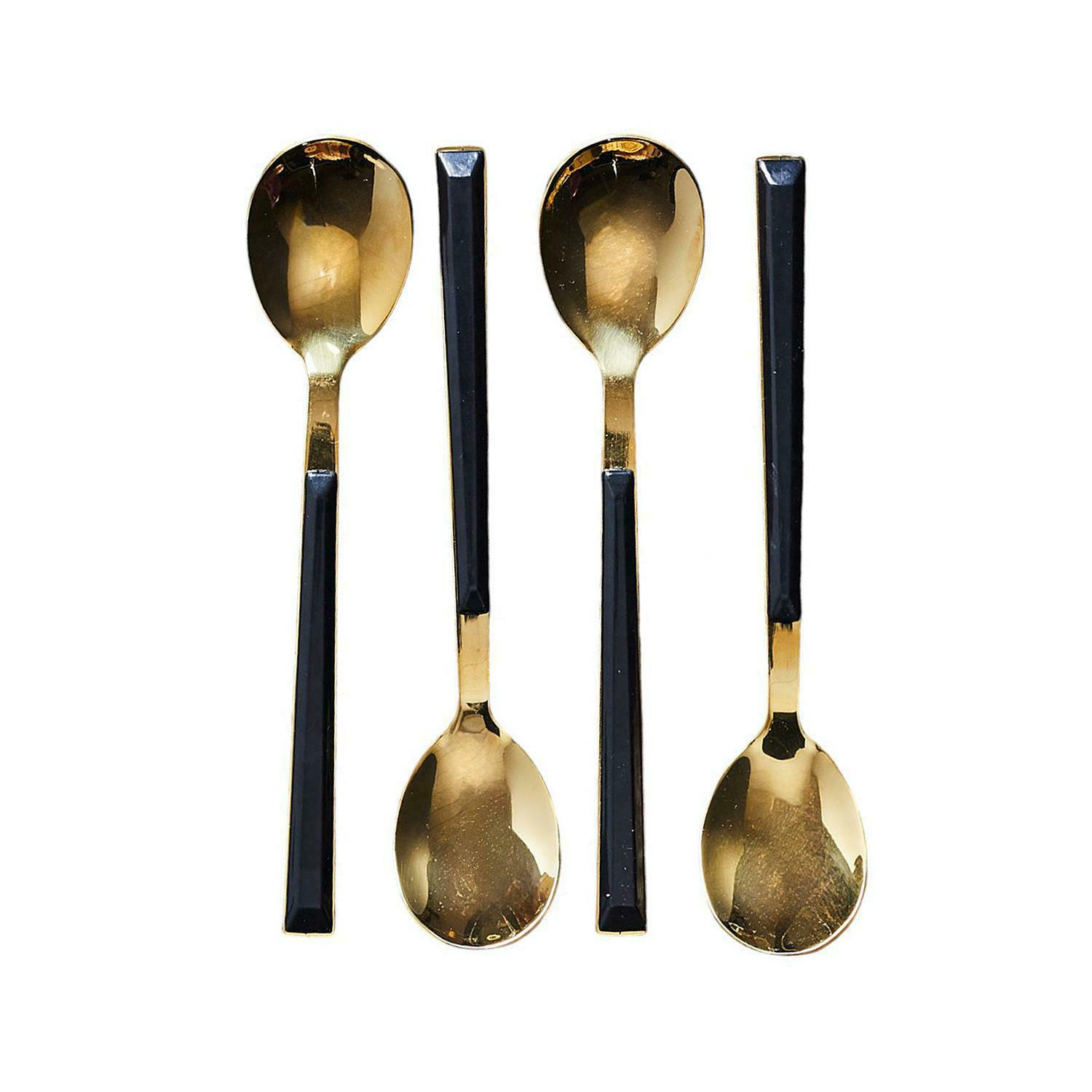 Zestaw 4 łyżeczek deserowych Charlotte w eleganckim złoto-czarnym wykończeniu to połączenie stylu i funkcjonalności. Wykonane z wysokiej jakości materiałów, doskonale sprawdzą się podczas serwowania deserów, kawy czy herbaty. Ich nowoczesny design i luksusowa kolorystyka dodadzą szyku każdemu nakryciu stołu. Idealne zarówno na specjalne okazje, jak i do codziennego użytku.