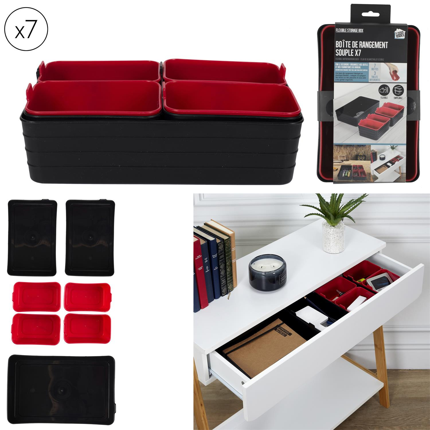 Zestaw 7 organizerów czarne/czerwone