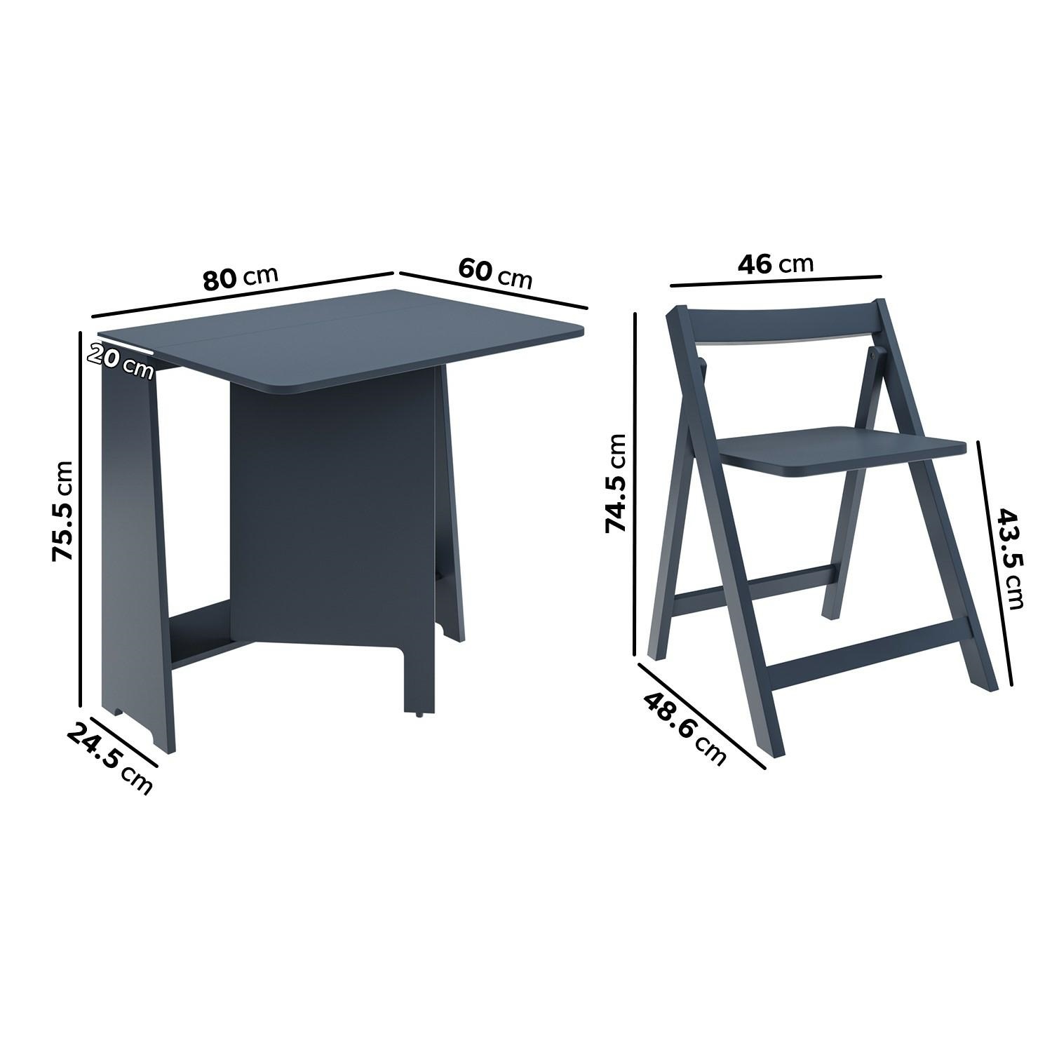 Zestaw Ivy to niezwykle funkcjonalny zestaw, który sprawi, że nawet niewielkie mieszkanie stanie się przestronne i komfortowe. Składany mały stół w kolorze granatowym wraz z dwoma krzesłami to doskonałe rozwiązanie dla małych przestrzeni, takich jak mieszkania czy kawalerki. To, co czyni zestaw wyjątkowym, to możliwość schowania krzeseł w złożonym stole. Dzięki temu oszczędzisz miejsce i stworzysz harmonijną aranżację, która nie przytłoczy wnętrza. Kiedy potrzebujesz stworzyć przestrzeń do spożywania posiłków czy pracy, składany stół i krzesła z łatwością sprostają Twoim oczekiwaniom. Stół wykonany został z solidnej płyty MDF, co gwarantuje trwałość. Krzesła w tym zestawie są wyjątkowe. Wykonane z litego drewna, emanują naturalnością i solidnością. Ich design jest minimalistyczny, co doskonale współgra z nowoczesnymi trendami wnętrzarskimi. Kolor granatowy dodaje im wyjątkowego stylu.