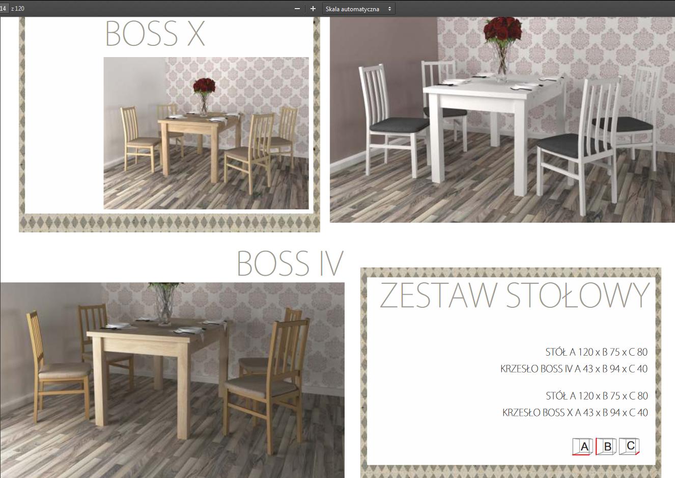 ZESTAW STOŁOWY BOSS występuje w dwóch wersjach kolorystycznych. Cena dotyczy stołu i 4 krzeseł.